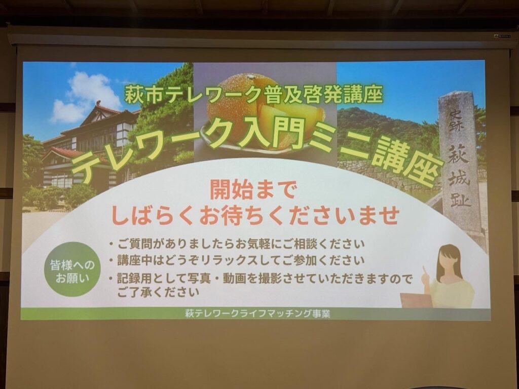 10月16日(木)に、萩テレワーク推進パートナー企業に登録されている「株式会社aubeBiz」(本社:東京都)様に、テレワークを始めるための基礎講座を実施していただきました。