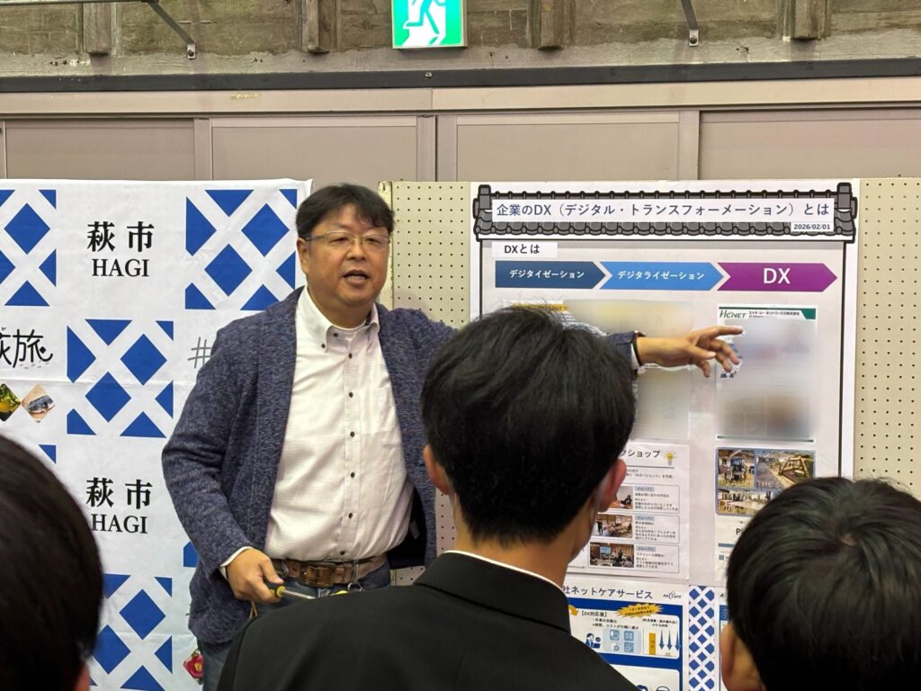 2月1日(日)、萩高等学校主催の「探究活動発表会」が開催され、萩市の誘致企業である株式会社ネットケアサービス、株式会社PHONE APPLI、エイチ・シー・ネットワークス株式会社とともに、ポスターセッションに参加しました。